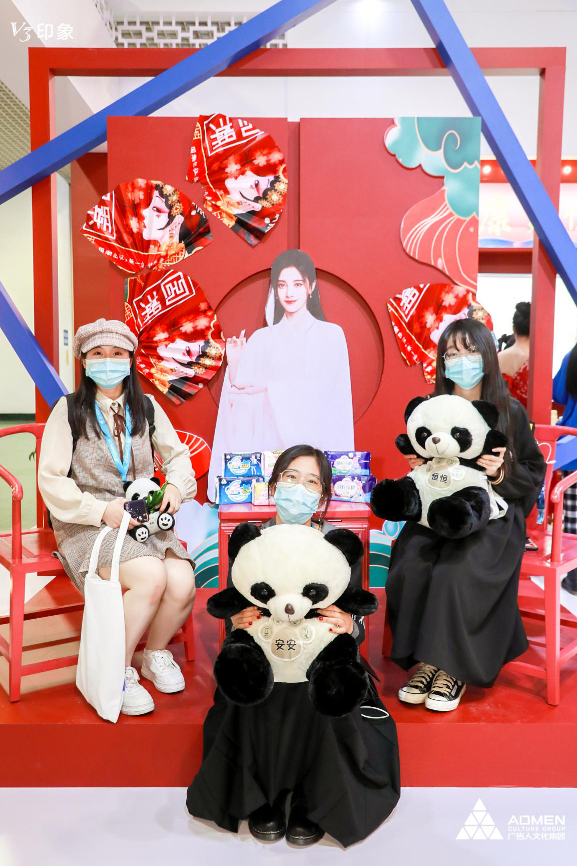东升国际集团展位的正红布景极具特色,吸引了众多国风爱好者前来打卡,不少汉服小仙女都被熊猫玩偶萌翻了,纷纷合影留念。